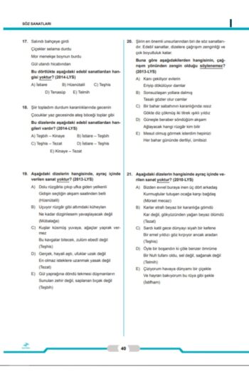 2025 Ayt Edebiyat Konularına Göre Tasnif Edilmiş Tamamı PDF Çözümlü Çıkmış Sorular