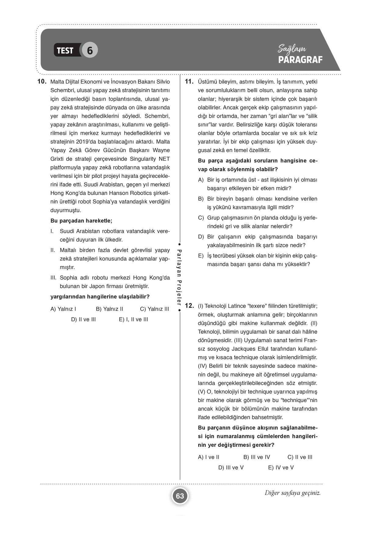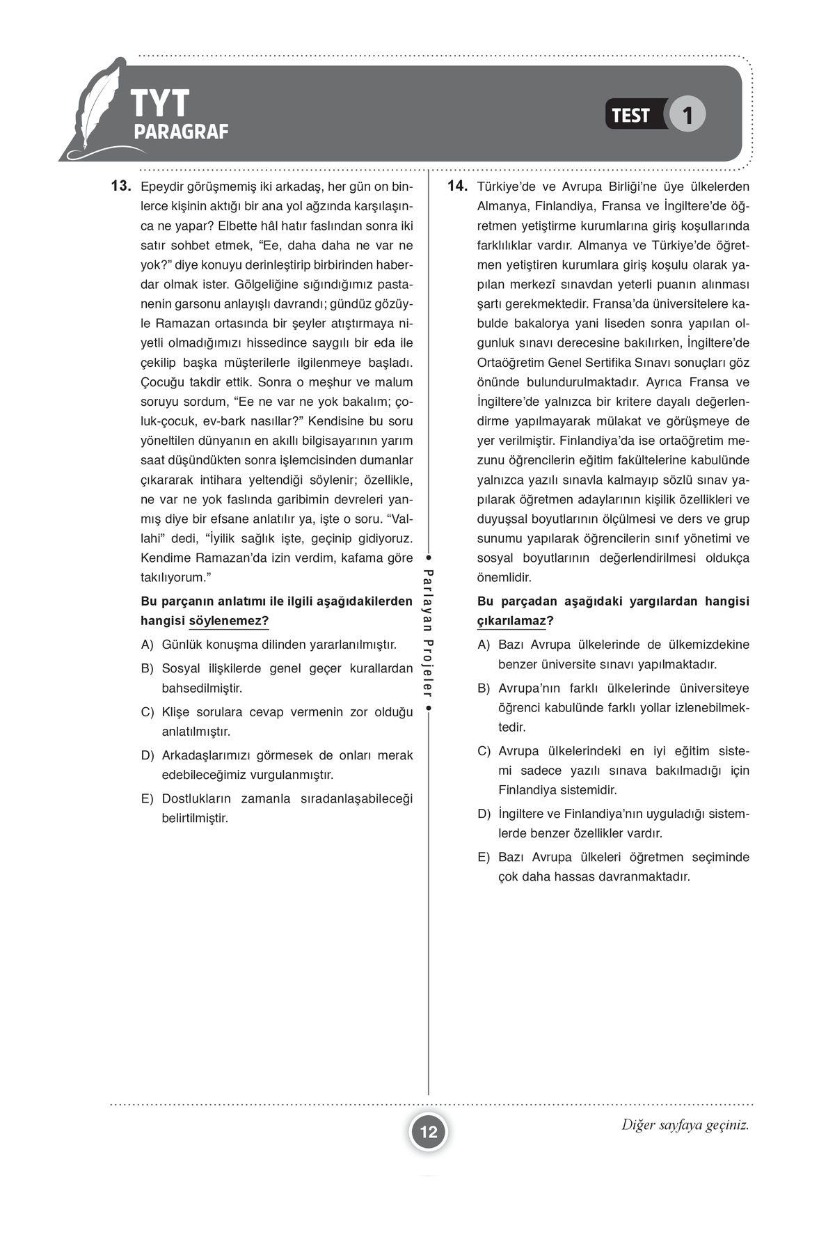 2025 TYT Sağlam Paragraf Soru Bankası 25×25 Deneme Formatında Parlayan Projeler