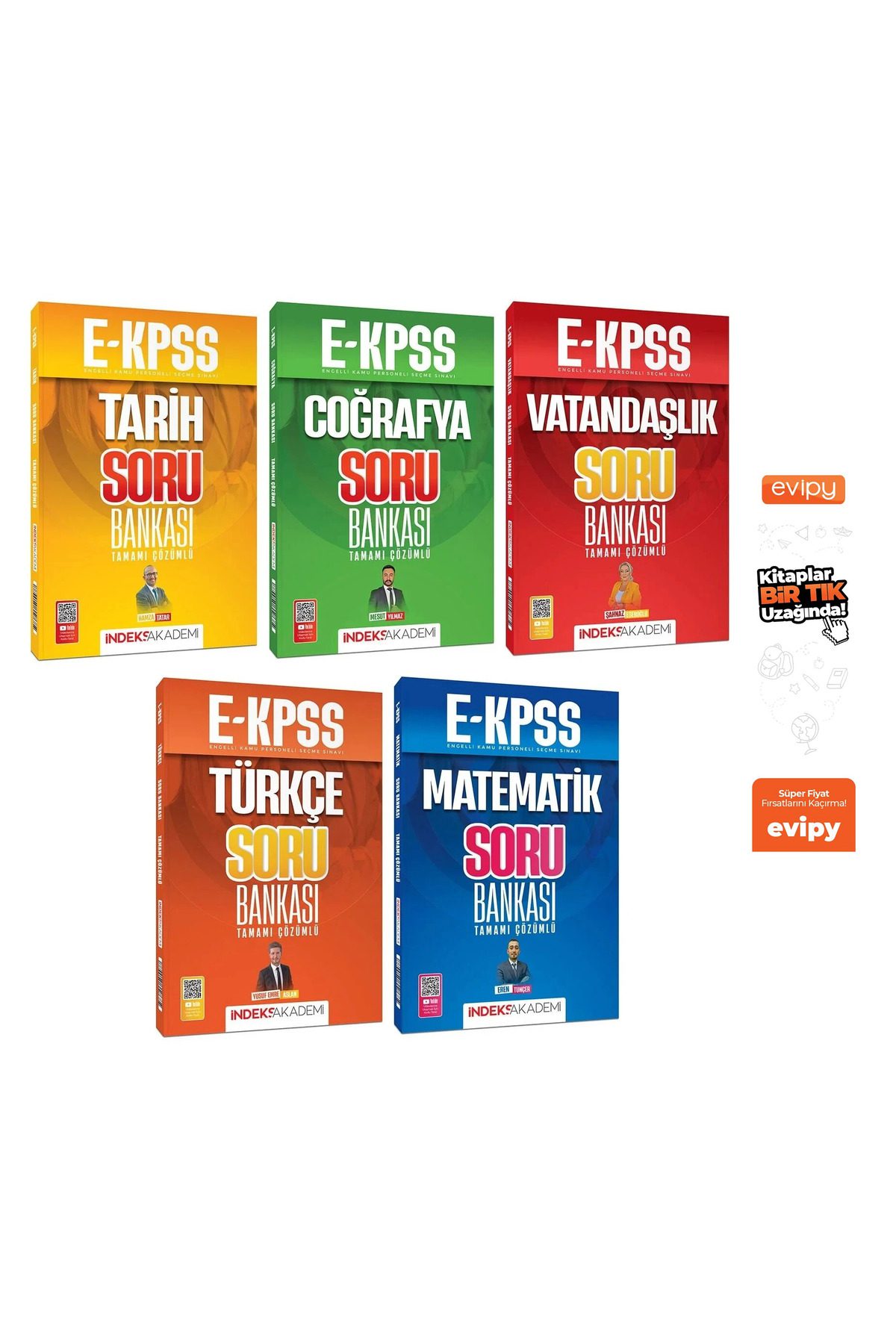 2026 EKPSS Soru Bankası 5 li Çözümlü Ayraç Hediyeli İndeks Akademi 1- İndeks Akademi EKPSS Tarih Soru Bankası Çözümlü – Hamza Tatar İndeks Akademi Yayıncılık 2- İndeks Akademi EKPSS Coğrafya Soru Bankası Çözümlü – Mesut Yılmaz İndeks Akademi Yayıncılık 3- İndeks Akademi EKPSS Vatandaşlık Soru Bankası Çözümlü – Şahnaz Eseroğlu İndeks Akademi Yayıncılık 4- İndeks Akademi EKPSS Türkçe Soru Bankası Çözümlü – Yusuf Emre Aslan İndeks Akademi Yayıncılık 5- İndeks Akademi EKPSS Matematik Soru Bankası Çözümlü – Eren Tunçer İndeks Akademi Yayıncılık