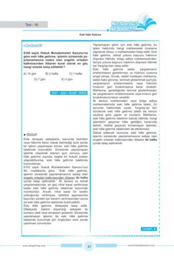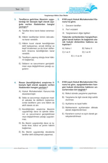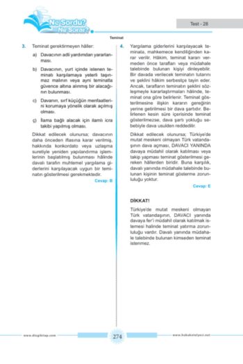 Dizgi Kitap Hukuk Atölyesi İcra Müdürlüğü Ne Sordu Ne Sorar Medeni Usul Hukuku Hukuku Tamamı Çözümlü Soru Bankası Cem Şahin ; 409 sorudan oluşmaktadır.; ; Konu Tasnifi ve soru sayıları: ; Çekişmeli Yargı İşleri ve Çekişmesiz Yargı İşleri: 3 soru ; Medeni Yargıda Görevli Mahkemeler: 13 soru ; Hakimin Yasaklılığı ve Hakimin Reddi: 17 soru ; Hâkimlerin Hukuki Sorumluluğu: 6 soru ; Görev (Konu Bakımından Davaya Bakacak Mahkeme): 11 soru ; Yetki (Yer Bakımından Davaya Bakabilecek Mahkeme): 8 soru ; Yetki Sözleşmesi: 3 soru ; Yetki İtirazı: 5 soru ; Yetkisizlik Kararı Üzerine Yapılacak İşlemler: 3 soru ; Yargılamaya Hâkim Olan İlkeler: 10 soru ; İstinabe ve Naip Tayini: 4 soru ; Yargı Yeri Belirlenmesi (Merci Tayini): 2 soru ; Süreler: 4 soru ; Tebligat: 4 soru ; Adli Tatil: 6 soru ; Eski Hâle Getirme: 5 soru ; Tarafların Ehliyetleri: 14 soru ; Dava Şartları: 9 soru ; İlk İtirazlar: 5 soru ; Dava Çeşitleri: 21 soru ; Davanın Açılması ve Dava Dilekçesi: 6 soru ; Davayı Geri Alma ve Davadan Feragat: 3 soru ; Cevap Dilekçesi Davaya Cevap Verilmesi: 9 soru ; İddianın ve Savunmanın Genişletilmesi veya Değiştirilmesi Yasağı: 10 soru ; Ön İnceleme Aşaması: 5 soru ; Tahkikat Aşaması: 10 soru ; İsticvap: 4 soru ; Teminat: 4 soru ; Ön Sorun ve Bekletici Sorun: 4 soru ; Davanın İhbarı: 4 soru ; Davaya Müdahale: 8 soru ; Dava Arkadaşlığı: 7 soru ; Karşı Dava: 5 soru ; Davaların Birleştirilmesi ve Ayrılması: 5 soru ; Islah ve Maddi Hataların Düzeltilmesi: 10 soru ; Dava Konusunun Devri : 2 soru ; İspatın Konusu, İspat Hakkı ve İspat Yükü: 5 soru ; İkrar: 5 soru ; Deliller: 2 soru ; Senet: 15 soru ; Yemin: 5 soru ; Tanık Beyanı: 14 soru ; Bilirkişi Oy ve Görüşü: 10 soru ; Keşif İcrası: 5 soru ; Uzman Görüşü : 2 soru ; Delil Sözleşmesi: 3 soru ; Geçici Hukuki Koruma Tedbirleri: 14 soru ; Delil Tespiti: 3 soru ; Davaya Son Veren Taraf İşlemleri (Feragat, Kabul, Sulh): 13 soru ; Sözlü Yargılama, Karar ve Hüküm: 11 soru ; Hükmün Tashihi, Hükmün Tavzihi ve Hükmün Tamamlanması: 6 soru ; Basit Yargılama Usulü: 6 soru ; Kanun Yolları, İstinaf: 7 soru ; Temyiz: 5 soru ; Yargılanmanın İadesi (Yenilenmesi): 5 soru ; Adli Yardım: 5 soru ; Yargılama Giderleri: 4 soru ; Tahkim: 10 soru ; Hukuk Uyuşmazlıklarında Arabuluculuk: 5 soru ; ;