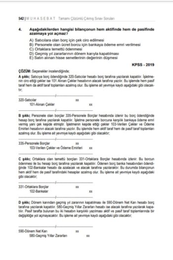 Muhasebat KPSS A Sayıştay Tamamı Çözümlü Tüm Yıllar (2001-2024) Çıkmış Muhasebe Soruları