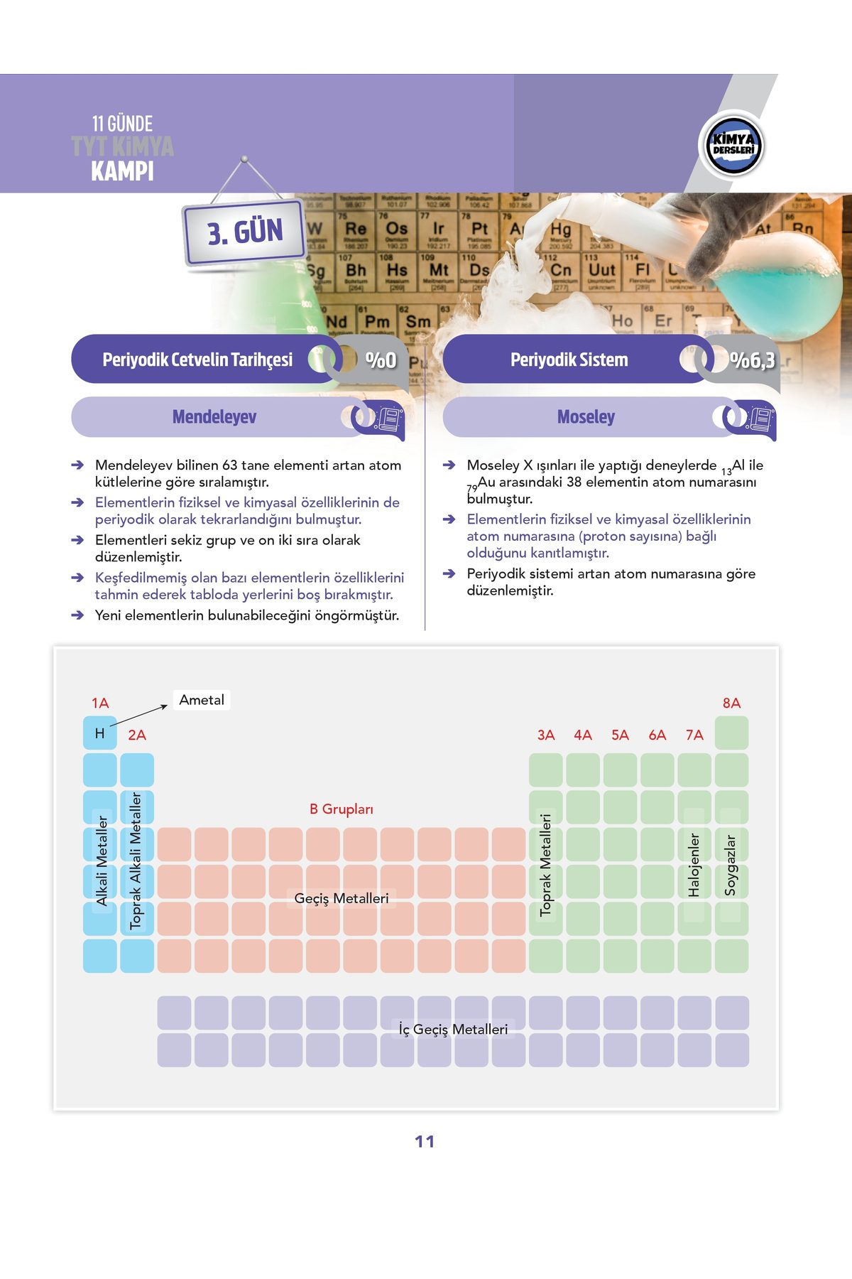 64 Sayfa Büyük Boy Rengarenk Baskı. ; Gel 11 Günde efsane bir tekrar yapalım. ; TYT Kimya’ya dair ne varsa birlikte bitirelim, örnek sorularla sınava eksiksiz hazırlanalım.;
